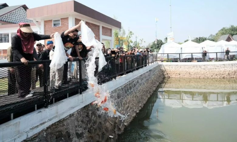 Ratusan Ikan Koi dan Nila Ditebar Warnai Rangkaian Peresmian Taman Albar
