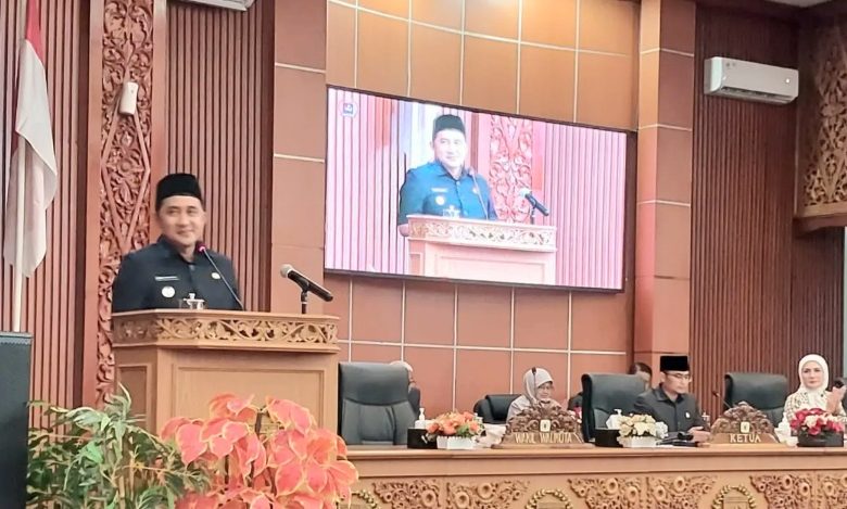 DEBAR.COM.-DEPOK- DPRD Kota Depok menggelar Rapat Paripurna yang dihadiri Wakil Wali Kota Depok, Chandra Rahmansyah menyampaikan pendapat akhir Pemerintah Kota terhadap pembahasan Rancangan Peraturan Daerah (Raperda) tentang Perubahan Kedua atas Peraturan Daerah Nomor 10 Tahun 2016 mengenai Pembentukan dan Susunan Perangkat Daerah Kota Depok, Senin (19/05/2025)