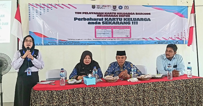 “Untuk itu pentingnya sosialisasi ini untuk membantu pelayanan publik yang terbaik kemasyarakat khususnya dikelurahan Depok untuk memiliki Kartu Keluarga Barcode dengan memberikan kemudahan pelayanan kepada masyarakat,” jelasnya.