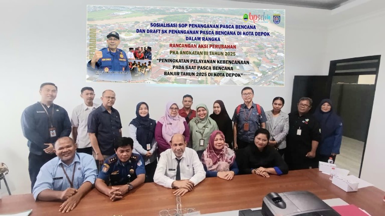 DEBAR.COM.-DEPOK- Dengan mengangkat tema ‘Peningkatan Pelayanan Kebencanaan Pada Saat Pasca Bencana Banjir Tahun 2025 di Kota Depok’, Dinas Pemadam Kebakaran dan Penyelamatan (Damkar) Kota Depok Bidang Penanggulangan Bencana menggelar sosialisasi SOP dan Pembahasan Draft SK Penanganan Pasca Bencana dalam rangka Rancangan Aksi Perubahan PKA Angkatan III Tahun 2025 pada Selasa (05/08/2025).