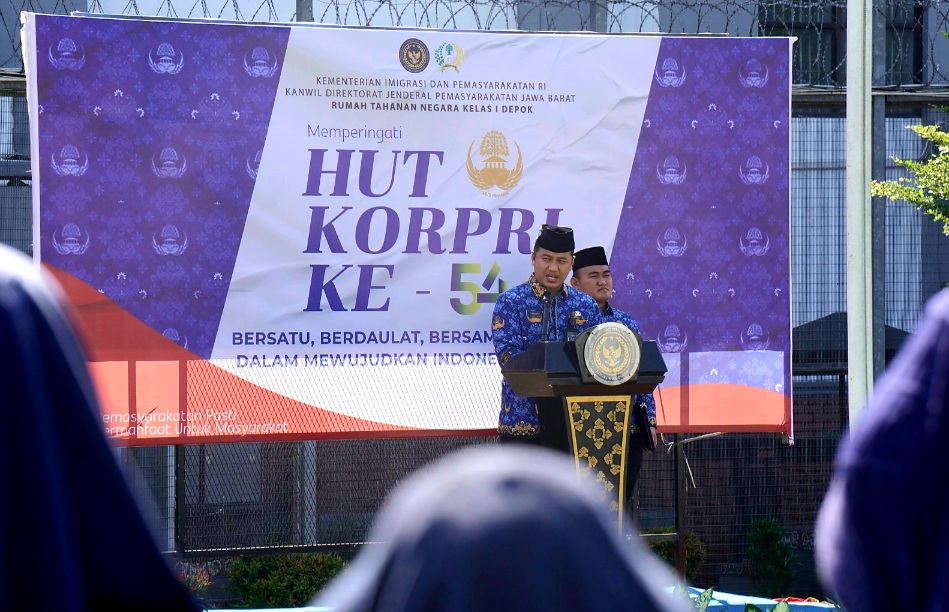 DEBAR.COM.-CILODONG, DEPOK- Dalam rangka memperingati Hari Ulang Tahun (HUT) ke-54 KORPRI, Rutan Kelas I Depok menggelar upacara yang berlangsung di lapangan Rutan Depok dan diikuti oleh pejabat manajerial, pegawai, peserta pemagangan nasional, serta warga binaan. Seluruh peserta mengikuti jalannya kegiatan dengan tertib,Senin (01/12/2025).