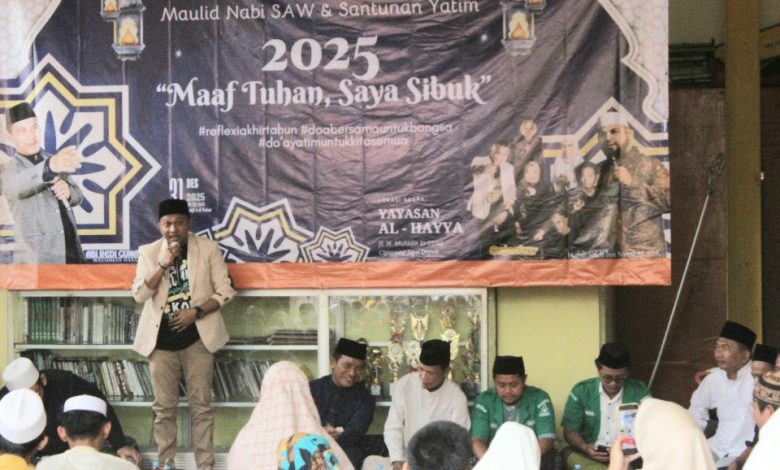 DEBAR.COM.-DEPOK- ‘2025…!!Maaf Tuhan, Aku Sibuk’, sebuah tema refleksi akhir tahun yang diangkat oleh PENA Foundation menutup pergantian tahun dengan berbagai rangkaian kegiatan, diantaranya Peringatan Maulid Nabi Muhammad SAW, Dzikir, Doa dan Berbagi kebahagiaan dengan Anak Yatim.
